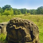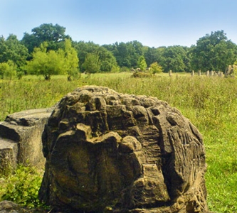 – Primul popas în poiană m-a impresionat profund. În mijlocul pădurii, o pajiște enormă smăltuită cu flori de toate culorile, chiar dacă toamna era pe sfârșite. Zidurile bisericii se înălțau la peste trei metri înălțime, însă acoperișul lipsea. În interior, un cireș falnic își găsise domiciliul și se înălța spre cer, parcă voia să protejeze zidurile. În preajma bisericii, numeroase cruci de piatră inscripționate cu litere chirilice, ne atenționau că poiana fusese cândva locuită. Pe la jumătatea anilor ´80 ai secolului trecut, poposind iarăși în poiană, am observat o schimbare radicală. În aparență poiana părea aceeași: aceeași suprafață, aceeași formă, aceeași pajiște smălțuită cu felurite flori. Și totuși, parcă din pământ răsăreau ansambluri sculpturale de piatră frumos dăltuite de meșteri pricepuți. La umbra a doi stejari seculari, îmi apărea o frumoasă cabană din lemn de mesteacăn, alb ca omătul, alături un cuptor alb, parcă venit din poveștile lui bădița Ion și o fântână cu apă limpede ca lacrima și rece, numai bună să-ți potolească setea. Dar un lucru m-a întristat: cireșul din biserică dispăruse, la fel și crucile de piatră, nu mai erau ca să-ți stârnească imaginația unor vremuri uitate. Cât despre zidurile bisericii ce să mai spun? Bănuiesc că sculptorii au fost cei care le-au demolat. Piatra au depozitat-o lângă ruine, după cum bine vedeți și dumneavoastră. Și totuși poiana era o splendoare înnobilată cu magnifice grupuri sculpturale: simboluri legendare, simboluri eroice, simboluri mistice… Acum suntem împreună în frumoasa poiană de altădată. După cum vedeți, suprafața poienii s-a redus cam la jumătate. Nu sunt vinovați pădurarii (nu s-au apucat să planteze copaci în poiană), vinovați sunt cei care administrează rezervația, prin regulile pe care le-au impus (au crezut că fac ceva bun). Vedeți cum pădurea nu ține cont de legile omenești și își impune propriile legi. Poiana este invadată de vegetația arborescentă și mai mult de jumătate dintre sculpturi sunt ascunse de pâlcuri de copaci crescuți în interiorul poienii. Natura nu poate fi judecată, dar oamenii pot fi trași la răspundere și obligați să îndrepte ceea ce au greșit.