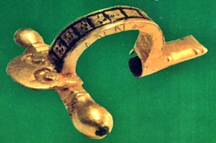 În mormântul care a scăpat în mod miraculos de jefuitori (celelalte peste 90 morminte din necropola Bărboşi fusese fie prădate, fie grav afectate de intemperiile cele 17 secole care au trecut peste ele) a fost descoperit scheletul unui bărbat a cărui vârstă a fost stabilită ca fiind de circa 30 de ani. Scheletul este bine conservat, în poziţie lungit, culcat pe spate, având craniul orientat la vest şi picioarele la est. Mâna stângă, uşor îndoită din cot, avea palma situată pe bazin, iar cea dreaptă, în unghi obtuz, avea palma aşezată pe abdomen, după ritul creştin. Capul aşezat cu faţa în sus avea privirea îndreptată către est, exact după tipicul înmormântării creştine. Inventarul funerar cuprindea piese specifice de port şi podoabă (fibulă de aur, două catarame şi o bentiţă provenind de la încălţăminte), dar şi alte materiale care aparţinuseră defunctului (pahar de sticlă, cutie metalică cu capac, cuţit de fier, căţuie dacică, opaiţ roman şi alte trei vase ceramice – amfore romane). Fără îndoială, între acestea, cea mai importantă rămâne fibula de aur cu inscripţia „INN…”(INNOCENS) ce a determinat pe autorul descoperirii să considere că ne aflăm în faţa primul mormânt creştin din secolul al III-lea de pe teritoriul românesc, însă osemintele celui botezat „Innocens” n-au fost niciodată datate prin metode ştiinţifice moderne, ci doar li s-a apreciat vechimea prin prisma dovezilor indirecte. Revoltător este că, ulterior descoperirii, scheletul a fost „conservat” cu zgură de furnal, fiind așezat pe un „pat” din acest material, fapt care i-a influențat starea inițială. I s-a spus „Innocens” („Inocentul; Nevinovatul; Cel neîntinat; Neatins de păcat; Cel sfânt”), plecând de la faptul că în mormânt a fost găsită o fibulă din aur (bijuterie folosită la prinderea mantiei) pe care erau gravate literele „INN”. Piesa, în greutate de 21 de grame, este binecunoscută în literatura de specialitate, fiind încadrată tipologic în categoria fibulelor „cu capetele în formă de bulbi de ceapă”(sau „buzdugan” (sceptru cu glob în vârf, sau cap de șoim – lovitura planetară neșteptată); sau „mugure” din care se va deschide un nou Ram al Pomului Vieții, Nașterea din Nou). Detaliul care face diferenţa între artefactul descoperit la Bărboşi şi alte piese similare identificate pe cuprinsul Daciei romane o face inscripţia numelui „INNOCENS” aflată pe cantul arcului port-agrafei. „Innocens” este probabil numele defunctului, antroponim cert de rezonanţă creştină, sau face referire la cel „crucificat” pe mica podoabă de aur. Dacă privim mai bine această fibulă vom vedea că în partea superioară aceasta are „doi ochi”, ca și prețioasele coifuri ale Frăției Getice.
