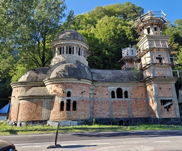 Sigur, am zis, fiind vară, lumea neștiind, oamenii trecători,  că se face rugăciune, că se trece pe Valea Oltului  și se întreabă ce este acolo și  lumea nu știe ce-i cu biserica aceasta.  Așa că am hotărât să facem un altar de vară,  în incinta curții bisericii, unde să se facă câte un acatist, o slujbă., orice lucru Dumnezeiesc, ca oamenii să vadă că acolo este viață și activitate. Am construit,   cu o echipă de dulgheri din Apuseni,  am continuat să demolăm toate  anexele în care stătuseră muncitorii altădată, să curățăm  zile întregi, să facem curățenie generală și  zi de zi am făcut câte ceva. Acum am pus  clopotul care în urmă cu  două săptămâni a bătut pentru prima dată,  și avem nevoie de o familie care să ne doneze ușile împărătești, ușile de la altarul de vară. Vom continua  să lucrăm, să ne apucăm de cupole. Avem  nevoie de ajutor, pentru că plouă prin cupole, deoarece de șapte ani șantierul a fost oprit și s-au spart, au apărut fisuri, biserica stând aproape să cadă.  Avem nevoie de multe, avem mult de muncit. Este greu, dar nu dăm înapoi. Mergem înainte. Dumnezeu  să ne ajute și să ne binecuvânteze. Biserica are hramul Sfântul Hristofor.