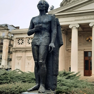 Pentru orice artist plastic român plăsmuirea chipului lui Eminescu a însemnat – și sper că așa va fi și mai departe – o probă de maximă încordare creatoare. Sculptorii ocupă un loc aparte, puțini fiind cei care să nu fie tentați de a-și pune, cu toată ambiția, întregul har în joc. Este banal să spun că Eminescu este scriitorul român cu cele mai multe statui, busturi, efigii și alte lucrări de acest fel. Atât în țară, cât și în străinătate. Subiectivitatea face parte din artă, ca și, desigur, din actul de percepere a ei. Personal – oameni suntem! – mă atrag în mod special Statuia din fața Ateneului Român, realizată de sculptorul Gheorghe Anghel (1904-1966) – este înmormântat la mânăstirea Pasărea -, și Bustul marelui nostru poet din ograda casei lui Aron Pumnul, de la Cernăuți, operă a admirabilului Marcel Guguianu. Dincolo de stilizare, de expresivitatea plastică a spiritului eminescian, de valoarea lor în sine, cele două lucrări mai au un lucru comun, mai puțin obișnuit: au fost făcute fără bani! Să auzi, să vezi și (aproape) să nu crezi…